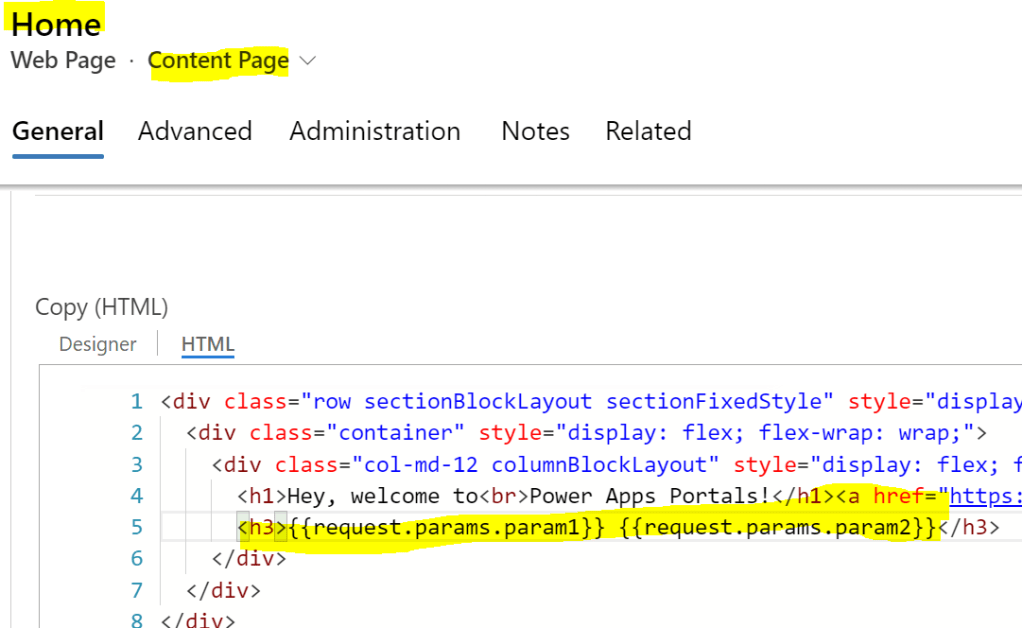 Now we can use the parameters in our page (via Liquid or JavaScript). Just for an example, I will render my parameters via Liquid in my Home Web Page: